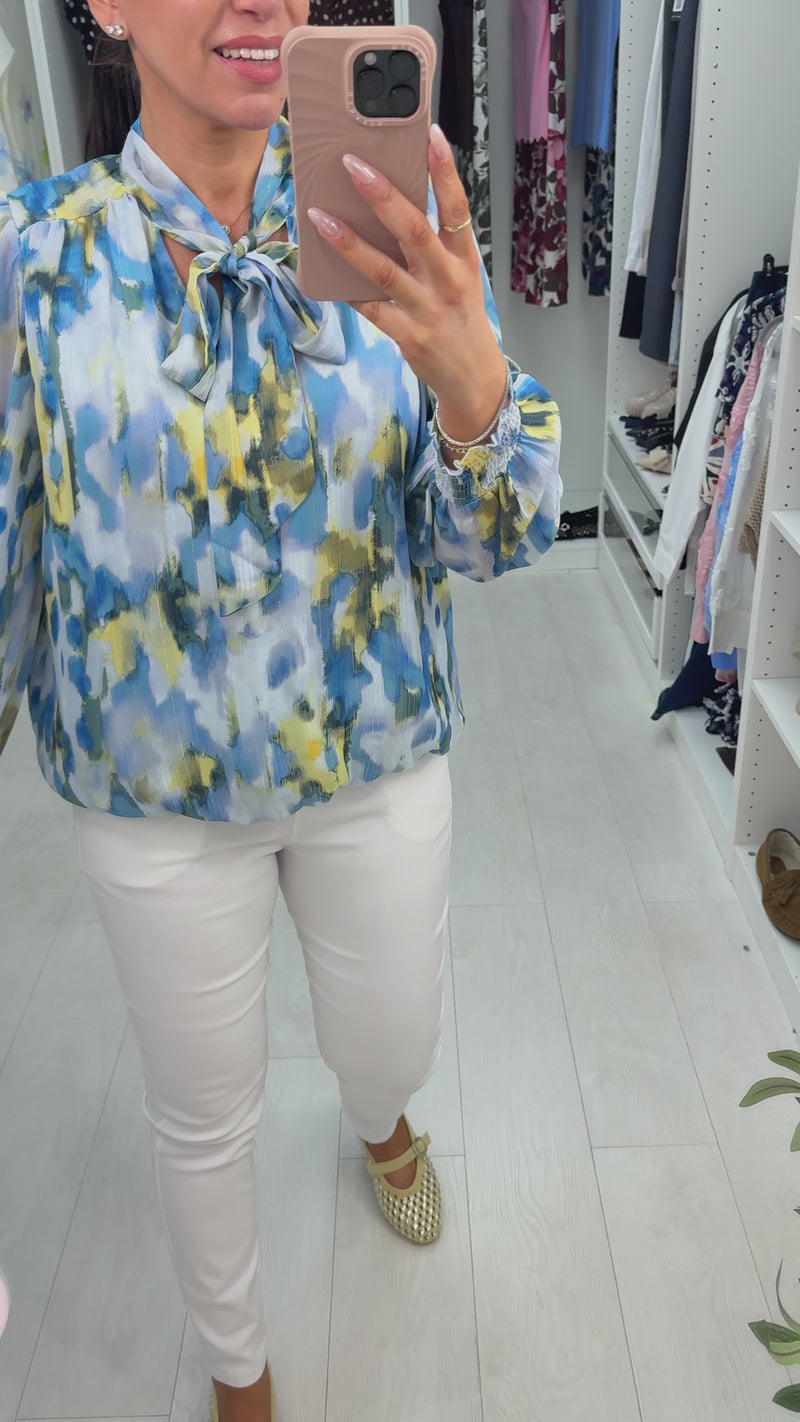 Zanna Watercolour Print Pussybow Blouse