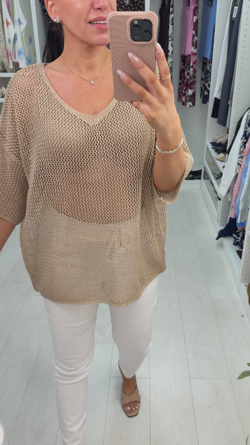 Dovie Crochet Gold Metalic V Neck Short Sleeve Top