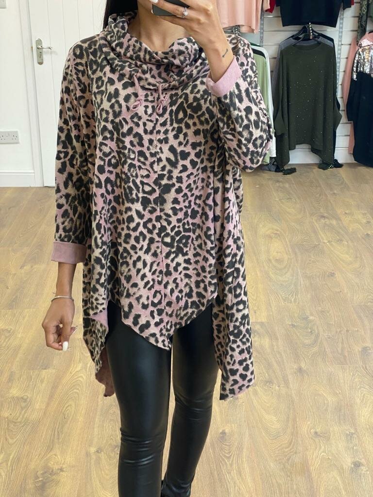 Damla Leopard Cowel Neckline Oversized Sweatshirt
