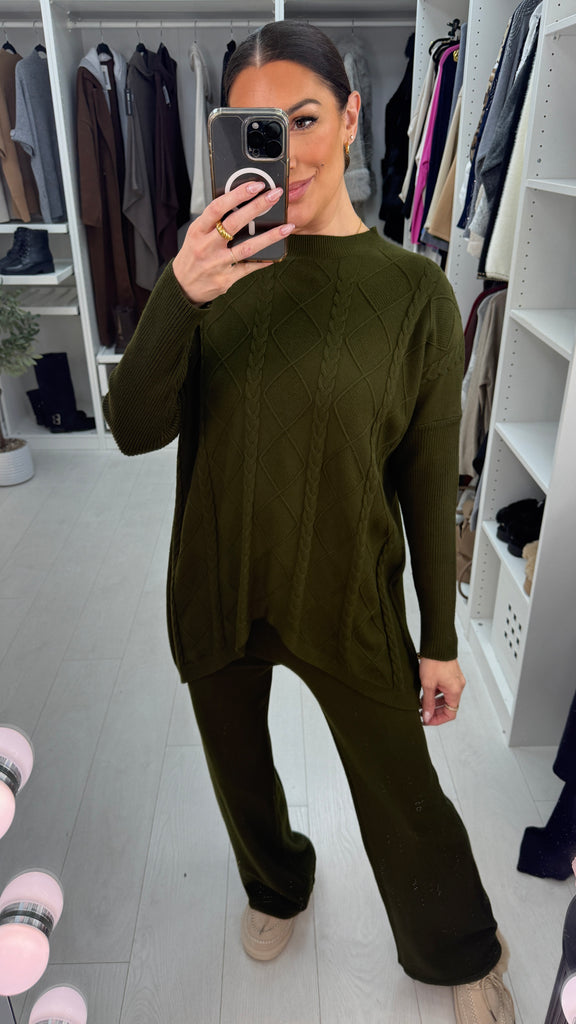 Elissa Round Neck Cable Knit Panel Loungewear Set