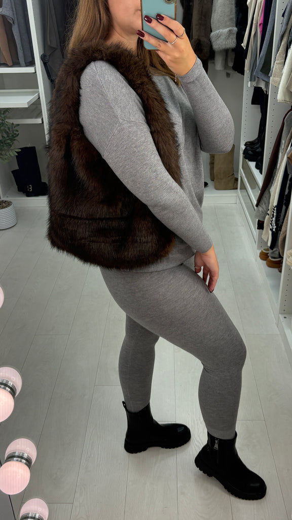 Sadey Pink Quilted Faux Fur Tie Waist Hooded Gilet