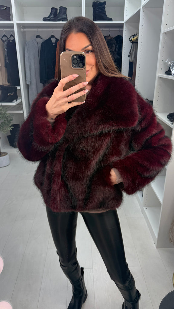 Miki Wine Faux Fur Panelled Longline Hooded Coat