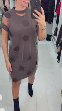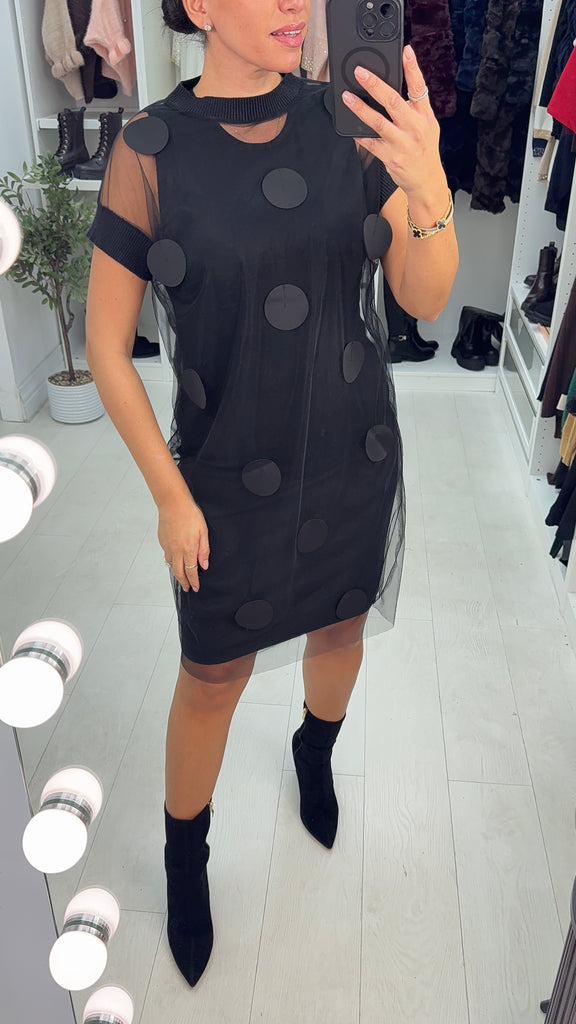 Cammie Polka Dot Mesh Overlay Jumper Dress