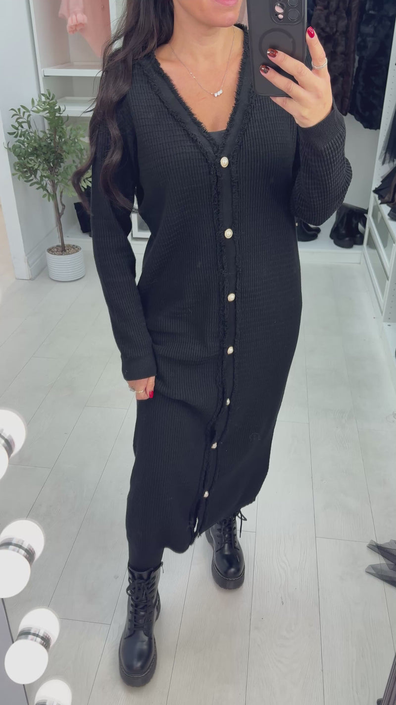 Samira Pearl Button Detailed Maxi Knit Dress
