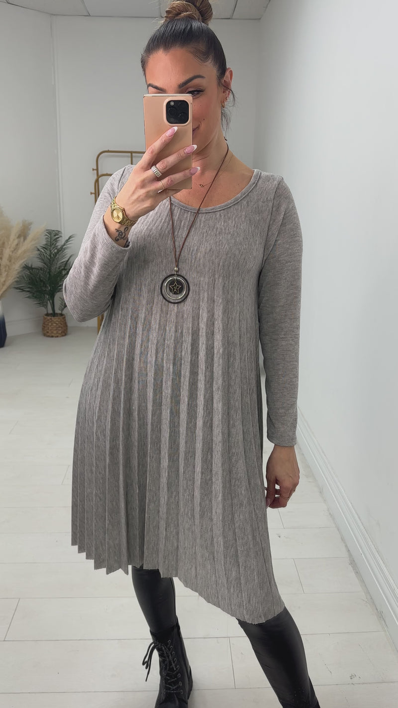 Elise Plain 2-In-1 Knitted Top Silk Pleated Dress