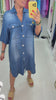 Kayley Denim Button Front Loose Fit Maxi Shirt Dress