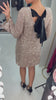 Elevate your party season wardrobe with the Lisana Sequin Embellished Bow Back Midi Dress. This show stopping piece features eye-catching sequin detailing that catches the light beautifully, paired with a charming bow back detail for an elegant twist. The relaxed loose fit and midi length offer comfortable, flattering coverage, while the classic round neck keeps the focus on the stunning embellishments. Perfect for festive occasions, celebrations, and nights out—this is the dress you'll reach for again and again when you want to make an impression.