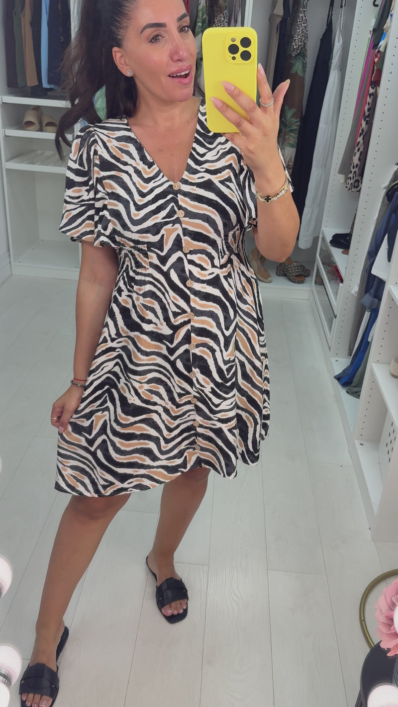 Nixie Abstract Print High Neck Tiered Midi Dress