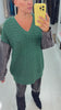 Meko Textured V Neck Denim Sleeve Jumper