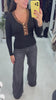 Add a wild twist to your wardrobe with the Montanna Ribbed Top. Featuring playful leopard print trim on a chic V-neck and cute button details, this long-sleeve top combines soft stretch fabric for comfort with eye-catching style. Perfect for bringing a fun, flirty vibe to any outfit!