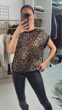 Elevate your style with the Ranita Leopard Print Satin Top, featuring a chic round ribbed neck and short sleeves finished with ribbed hems for a polished look. Crafted from smooth satin, this top combines comfort with a bold leopard print, making it perfect for adding a touch of fierce elegance to any outfit.
