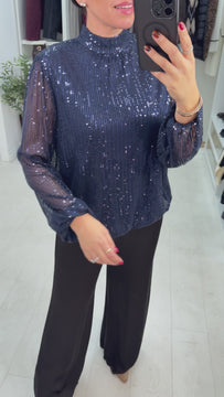 Elevate your party wardrobe with the Sloan Sequin Embellished High Neck Top. This show-stopping piece features luxurious lurex throughout, adorned with sparkling diamante embellishments that catch the light beautifully. The sophisticated high neck with button closure offers a refined silhouette, while the elasticated bubble hem creates a flattering, contemporary shape. Long sleeves with elasticated cuffs provide comfort and polish. Perfect for festive occasions, this top transforms any celebration into a glamorous moment.