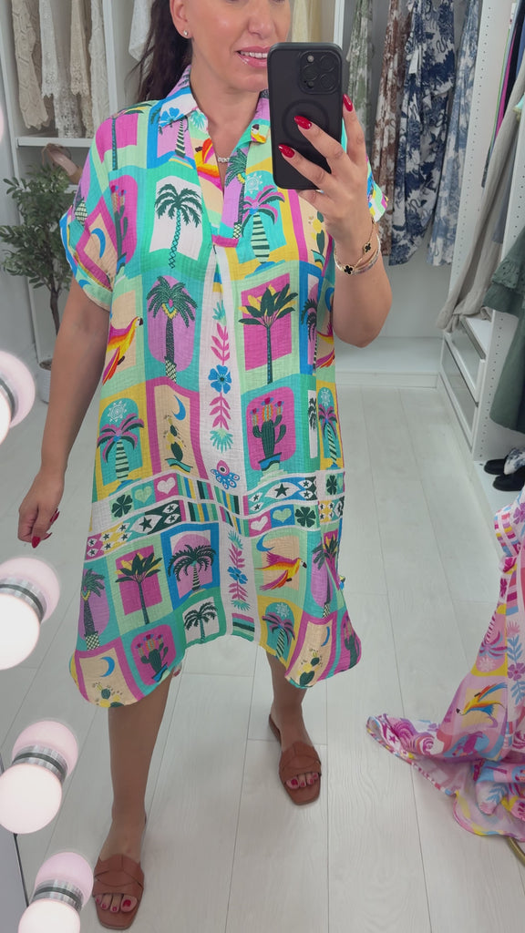 Kelly Tropical Print V Neck Cheesecloth Dress