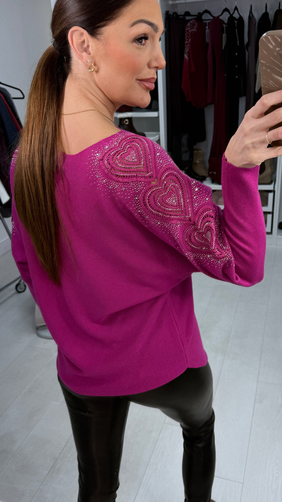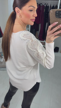 This playful ribbed knit jumper features a comfortable round neck and long sleeves, with a delightful twist—an embellished sleeve that adds just the right amount of sparkle to your everyday look. Perfect for turning heads while keeping cozy!