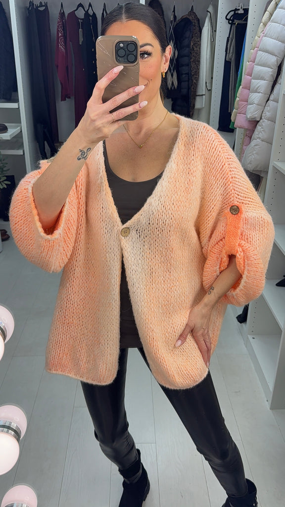 Cozy up in the Josie Rolled Sleeve Chunky Cardigan, where softness meets style! Featuring irresistibly soft fabric and charming rolled sleeves, this cardigan adds a playful touch to any outfit. The easy button closure keeps you comfy and chic whether you’re lounging or out and about. Perfect for those who love warmth with a wink of whimsy!