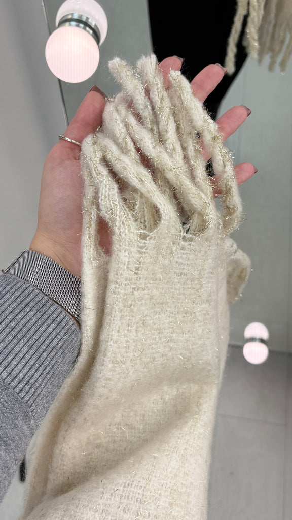 Wrap yourself in fun with the Sallie Sparkly Metallic Detailed Super Soft Scarf! This chunky, cosy scarf shimmers with sparkly metallic threads woven throughout, adding a touch of magic to chilly days. Super soft to the touch and featuring playful tassel edges, it’s the perfect accessory to brighten up any outfit while keeping you snug and stylish.