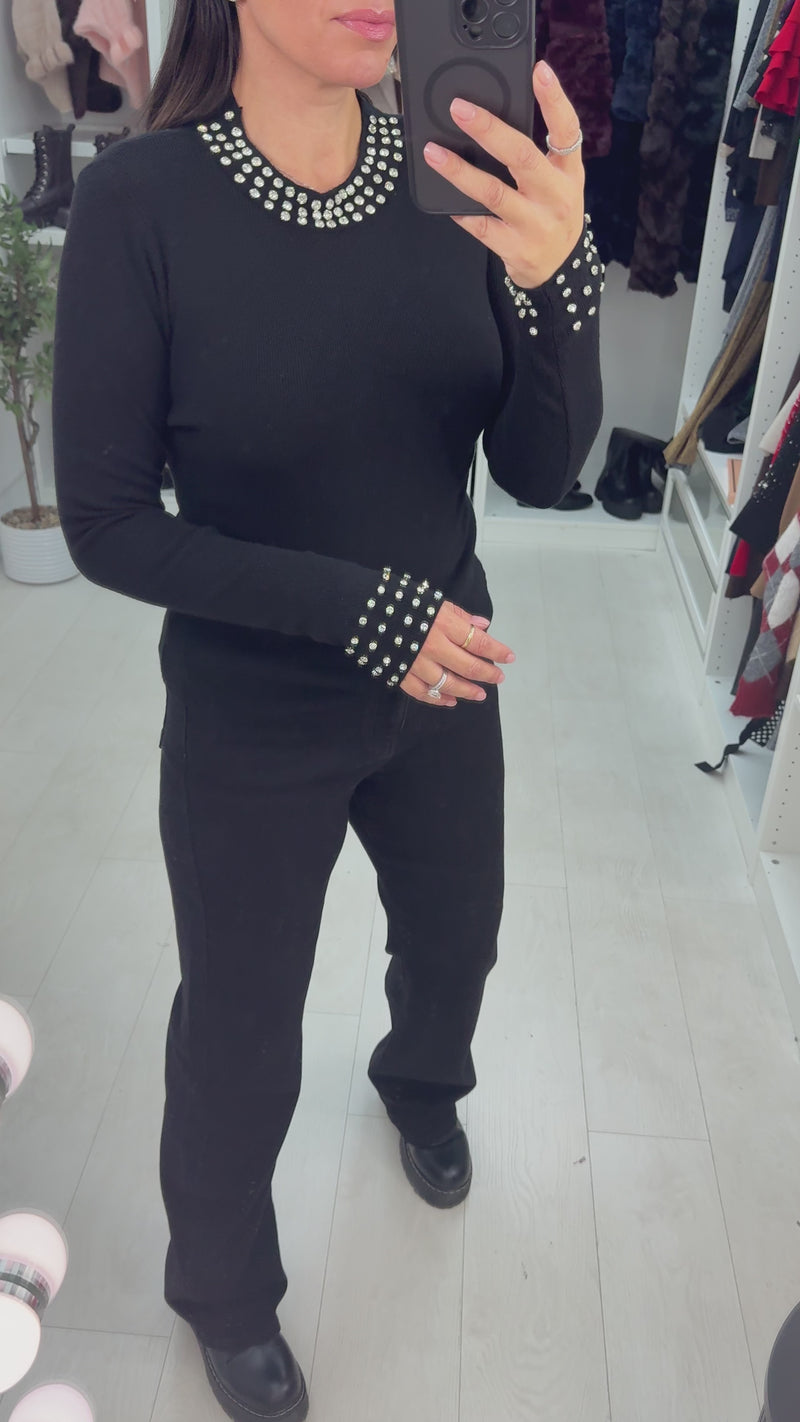 Hollis Embellished Sleeve Ribbed Knit Jumper