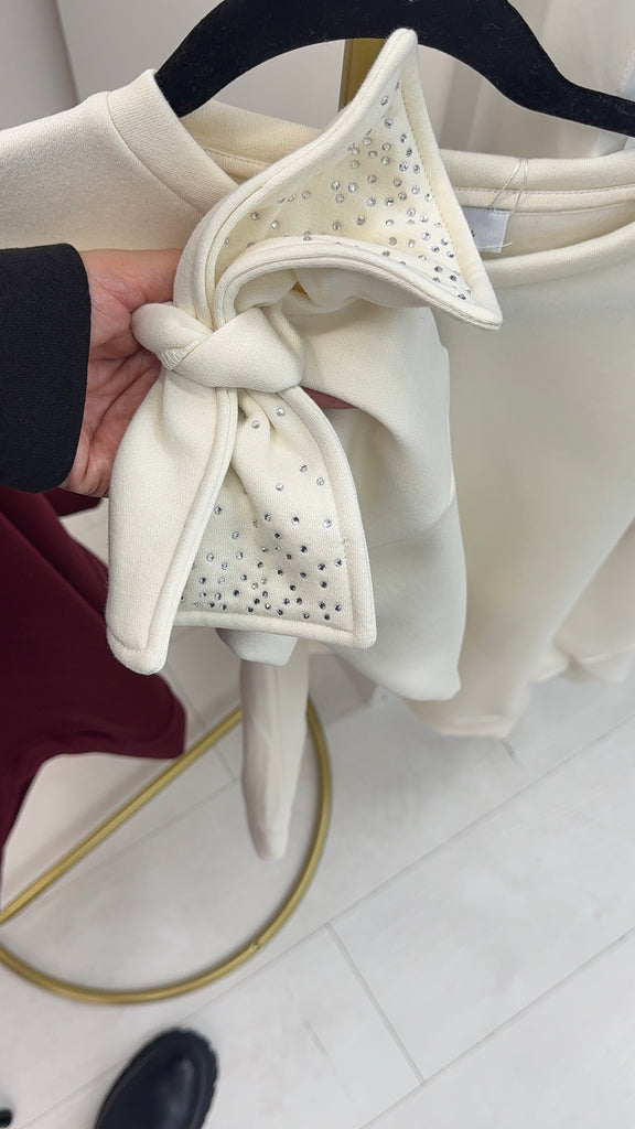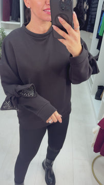 Aimea Plain Embellished Bow Sleeve Sweatshirt