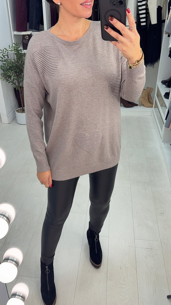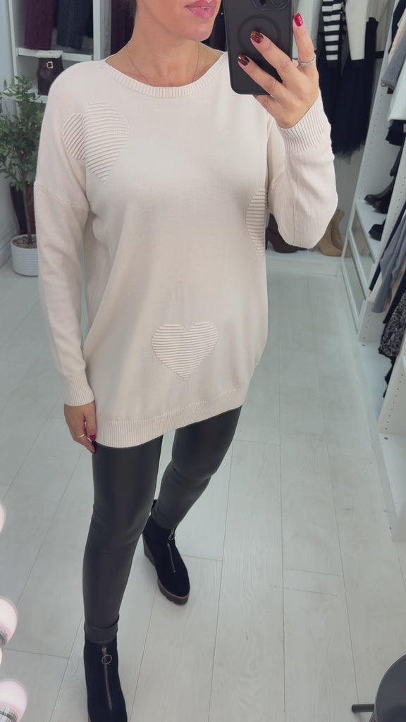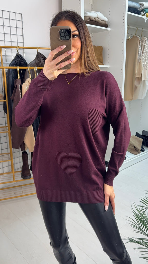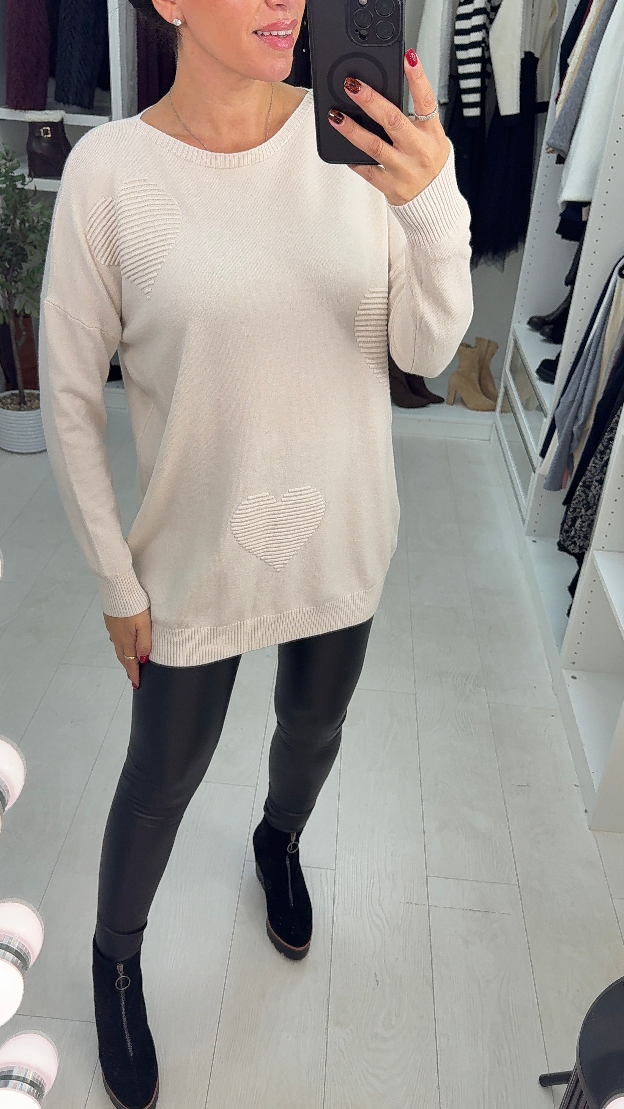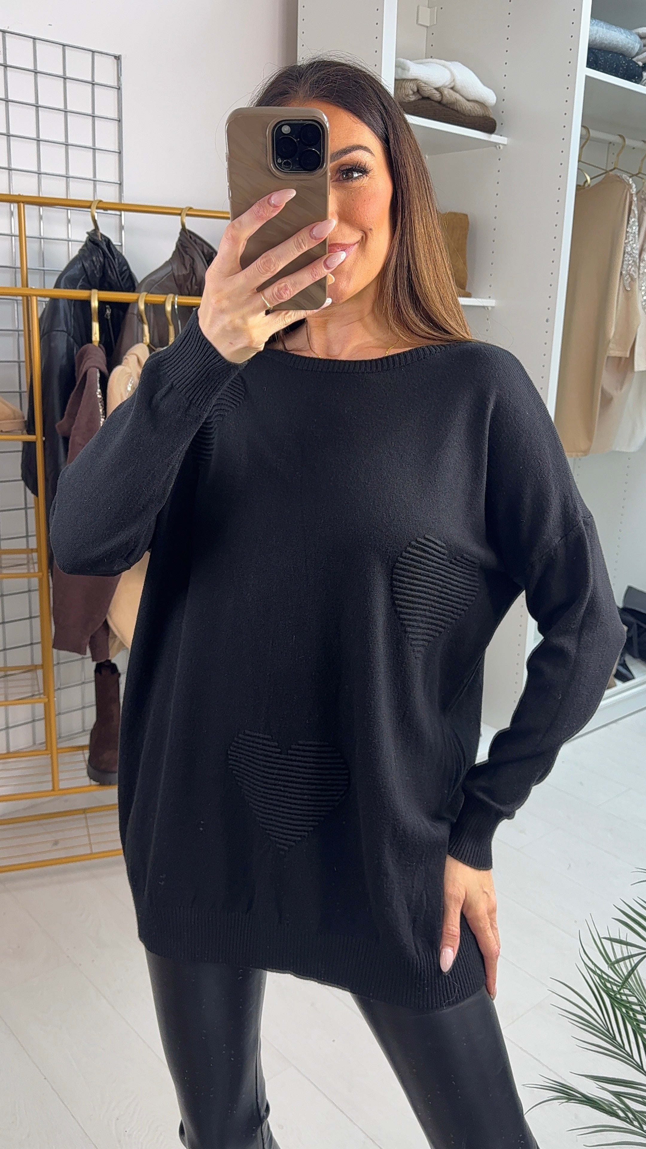 Alora Plain Textured Heart Detailed Loose Fit Jumper