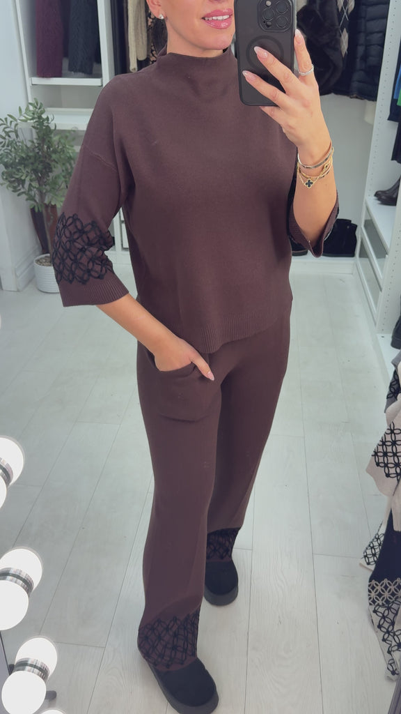 Discover effortless comfort with the Clara Plain Embroidered Hem Loungewear Set. This cosy ensemble features a high-neck long-sleeve top paired with wide-leg trousers, perfect for relaxing at home or casual outings. The delicate embroidered hem adds a touch of elegance, while the elasticated waist ensures a comfortable, flattering fit all day long. Soft, stylish, and designed for ultimate ease.
