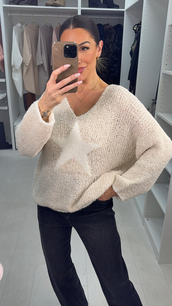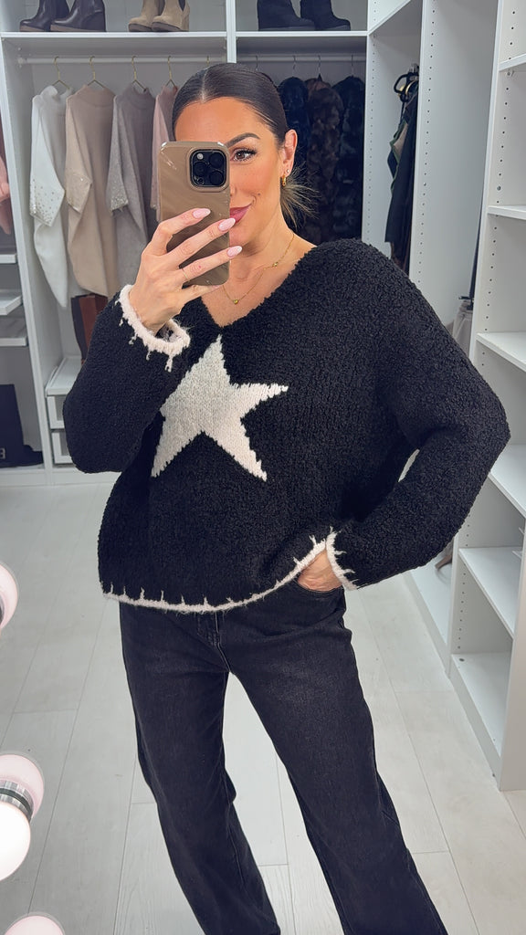 Wrap yourself in cozy charm with the Claudia Boucle Star Detailed V Neck Jumper. This super soft jumper features a playful star detail right at the front and a flattering V-neckline, perfect for adding a fun twist to your everyday look. Stay snug while showing off a sprinkle of personality wherever you go!