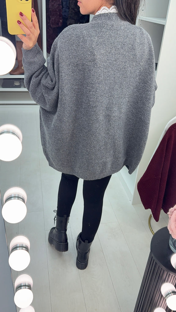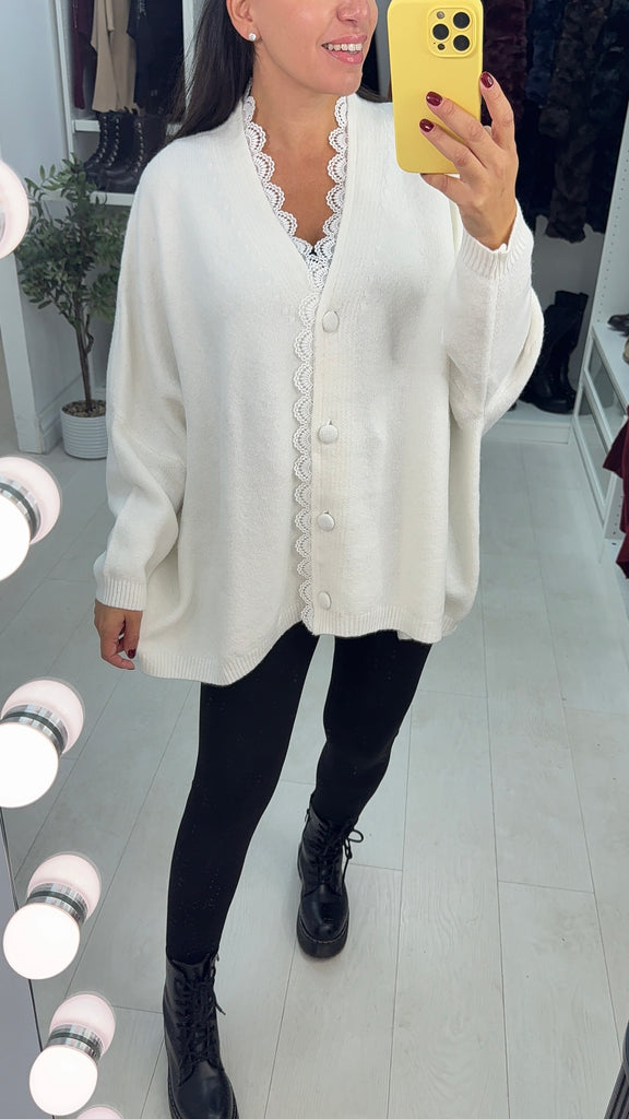 Embrace cozy charm with the Dalida Crochet Hem Loose Fit Cardigan. Featuring a playful crochet hem detail and a flattering V-neck, this cardigan drapes loosely for effortless comfort. Button it up for a stylish finish that’s perfect for layering in any season. Add a touch of whimsy to your wardrobe with this easygoing essential!