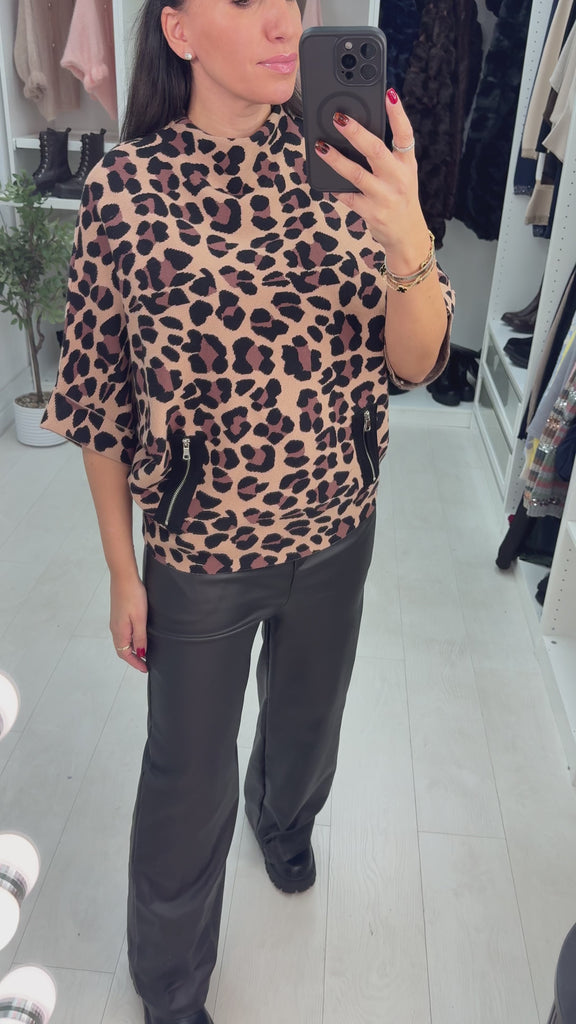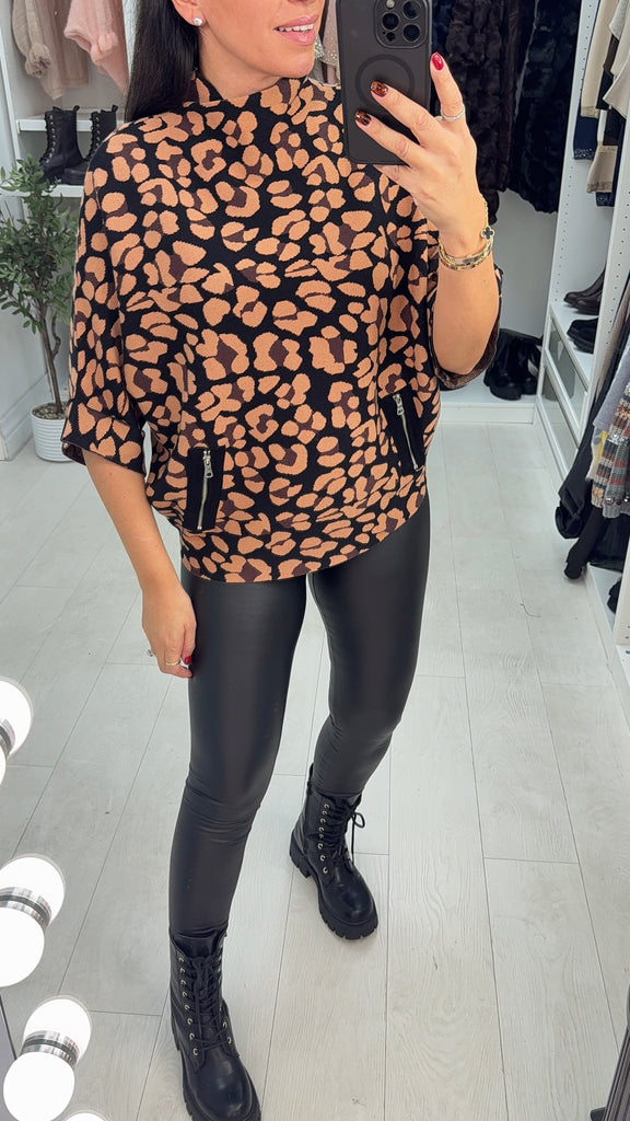Make a bold statement with the Danielle leopard print jumper, a versatile essential that transitions seamlessly from season to season. The sophisticated high neckline flatters every frame, while three-quarter sleeves offer practical coverage without bulk. A relaxed, loose silhouette provides all-day comfort and pairs effortlessly with your favourite bottoms, from tailored trousers to casual denim. The timeless leopard print adds instant personality to any outfit, ensuring you'll reach for this piece again and again. Perfect for those who refuse to compromise on style or comfort.