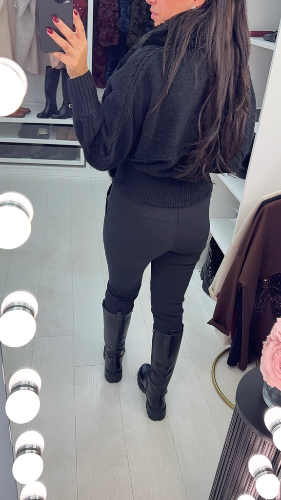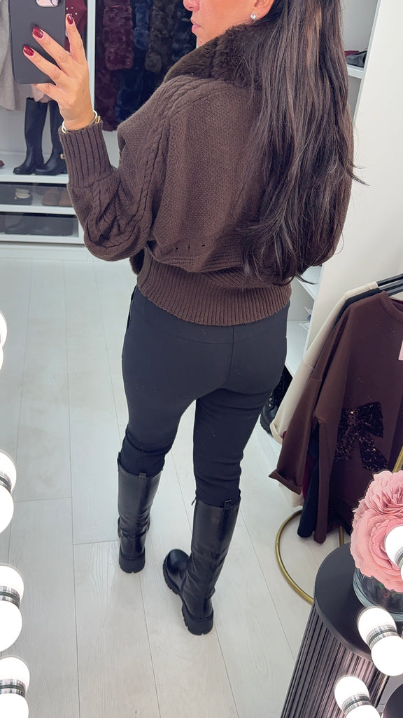Wrap yourself in cozy charm with the Elisa Faux Fur Open Front Cardigan. Featuring a chunky knit texture and a detachable faux fur trim, this cardigan lets you switch up your look from snuggly to sleek in seconds. Its open front design keeps it effortlessly cool while staying wonderfully warm—perfect for those “cost but chic” vibes. Playful, comfy, and versatile, Elisa is your go-to for stylish layers.