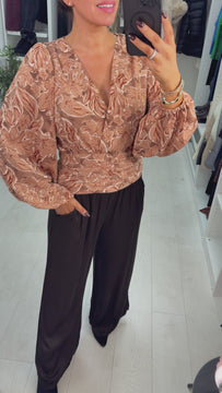 Elevate your party season wardrobe with the Ginny Floral Print Top—a striking piece that effortlessly transitions from celebration to everyday wear. The eye-catching print commands attention, while the elasticated back ensures a comfortable, flattering fit all night long. Long sleeves with elasticated cuffs provide a polished finish, and the V-neck with tie detail adds an elegant touch that's both sophisticated and playful. Perfect for festive occasions or styled down for casual confidence.