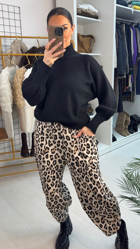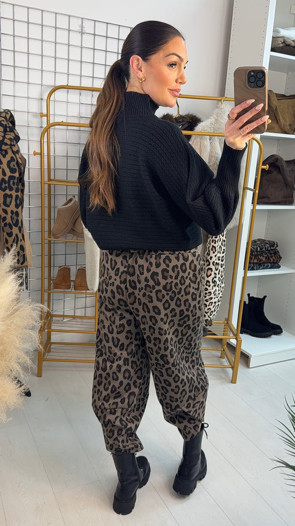 Add a splash of wild style to your casual wardrobe with these Indie Leopard Print Loose Fit Joggers. Designed for comfort, they feature a relaxed fit and an elasticated waist that moves with you. Large pockets add practicality while keeping the playful leopard print front and center. Perfect for lounging or turning heads on the go!