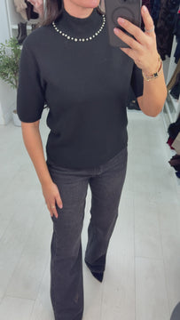 Elevate your wardrobe with the Novalie Embellished Neckline Short Sleeve Jumper. Featuring a high neck and a beautifully embellished neckline, this jumper combines elegance with comfort. Its super soft, stretchy fabric ensures a perfect fit and all-day ease, making it ideal for both casual and dressier occasions.