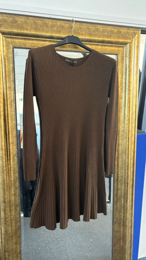 Bring effortless charm to your wardrobe with the Vivienna Plain Ribbed Dress. Featuring a soft stretch fabric, this dress hugs comfortably while the floaty skirt adds a breezy touch to your step. Its round neck and long sleeves keep things cozy, making it perfect for any season. Whether you're out for brunch or a casual day, this midi dress combines playful style with all-day comfort.