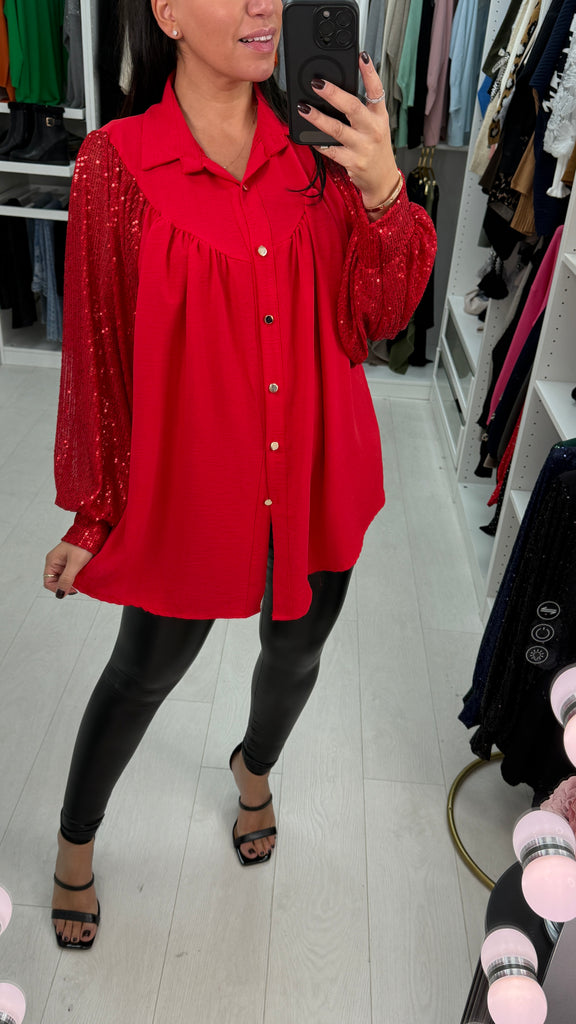 Kerrie Sequin Sleeve Loose Fit Blouse