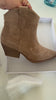 Step out in style with the Nickie Faux Suede Western Ankle Boots. Featuring a trendy heel and intricate embroidered details, these boots combine classic western charm with modern flair. Crafted from soft faux suede and equipped with a convenient side zip closure, they offer both comfort and easy wear. Perfect for elevating any outfit, these boots are a must-have for fashion-forward wardrobes.