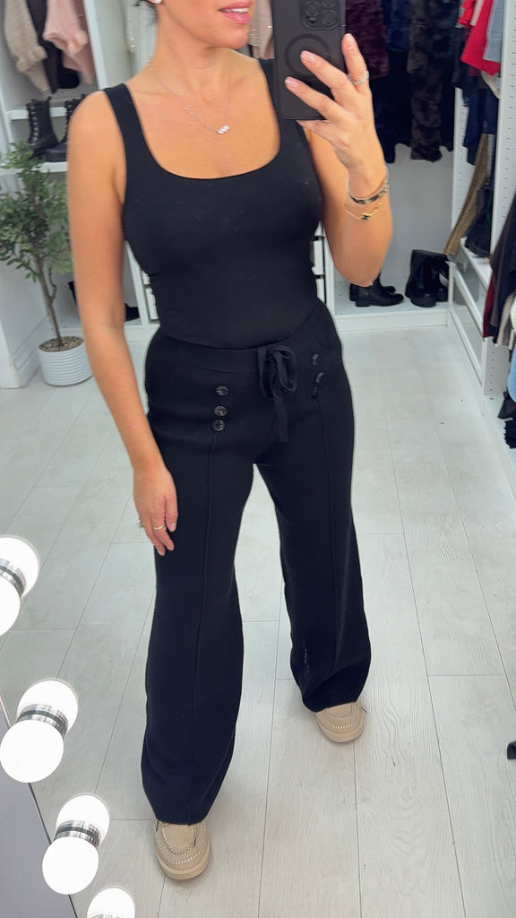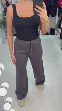Vivy Plain Button Detail Knitted Straight Leg Trousers