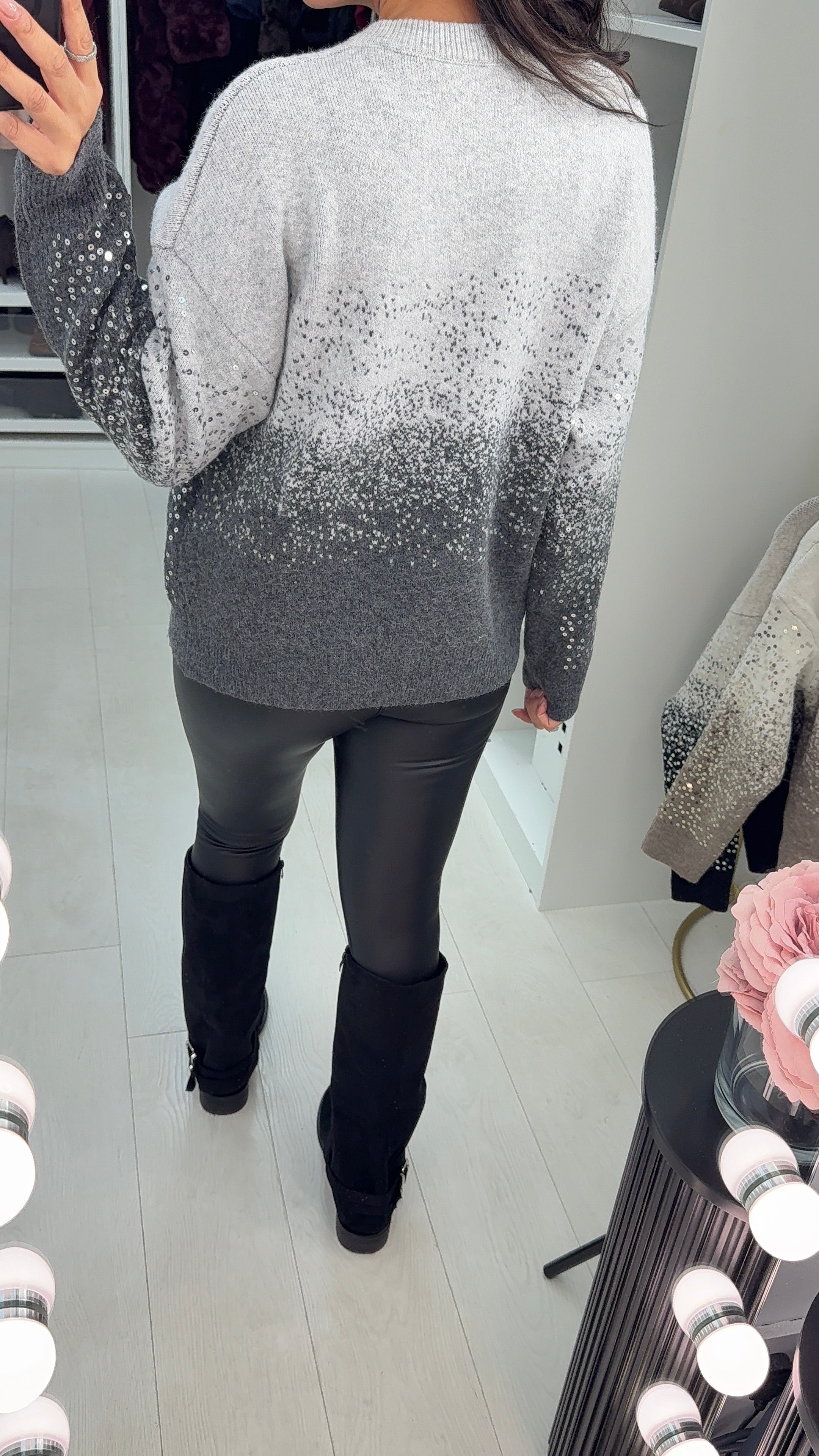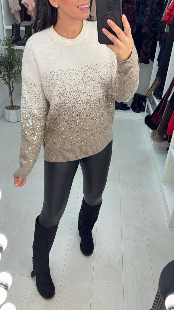 Experience unmatched comfort with the Celiana Sequin Detail Super Soft Jumper. Crafted from luxuriously soft fabric, it features a flattering round neck and eye-catching sequin accents that add a touch of sparkle. The elegant ombre pattern brings a stylish gradient effect, making this jumper a versatile choice for both casual and dressier occasions. Elevate your wardrobe with this cozy yet chic essential.