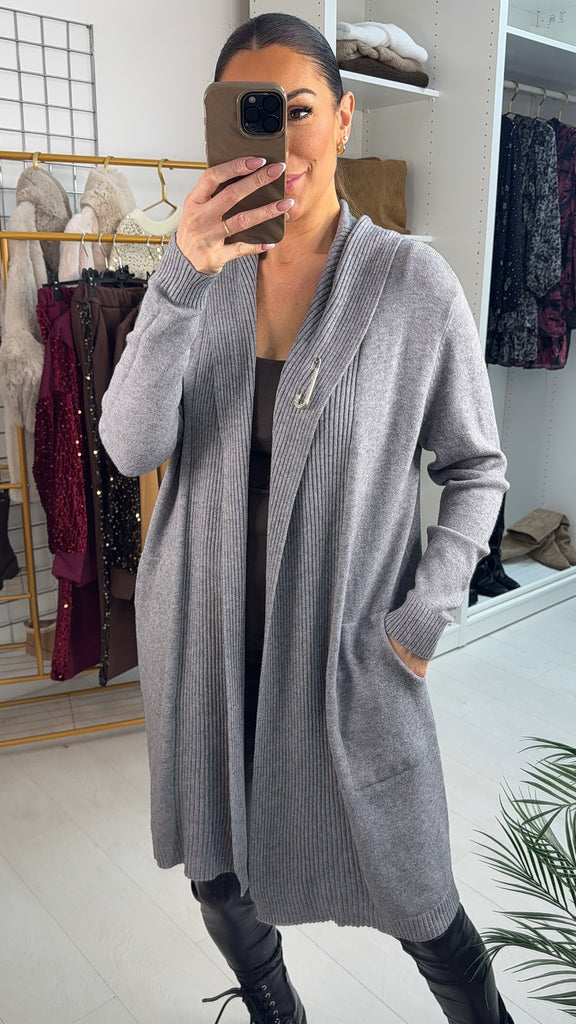 Seema Diamante Pin Hooded Drape Front Cardigan