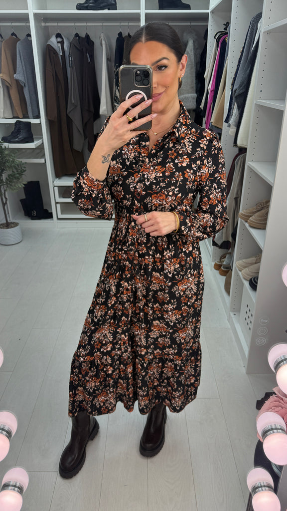 Step into effortless elegance with the Taylor Floral Print Magic Maxi Dress. Crafted from a soft, magic fabric, this playful maxi features long sleeves, a charming collar, and a shirred front that adds flattering texture. The half-button design brings a touch of casual chic, perfect for twirling through sunny days or breezy evenings. Embrace floral whimsy with every step!