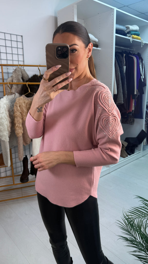 This playful ribbed knit jumper features a comfortable round neck and long sleeves, with a delightful twist—an embellished sleeve that adds just the right amount of sparkle to your everyday look. Perfect for turning heads while keeping cozy!