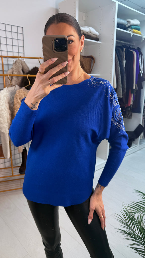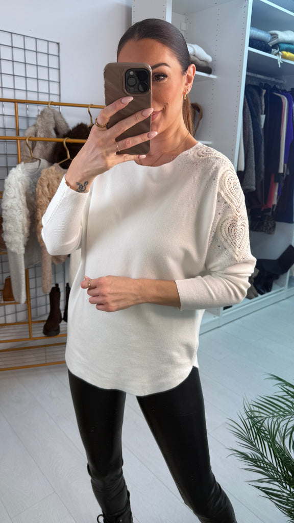 Hollis Embellished Sleeve Ribbed Knit Jumper