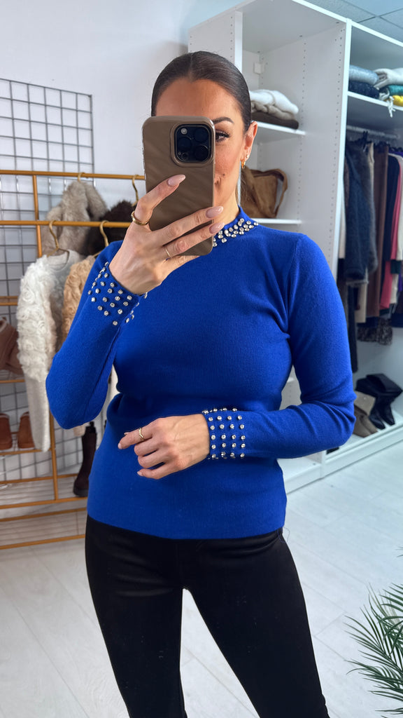 Patrese Diamante Detail Round Neck Ribbed Jumper