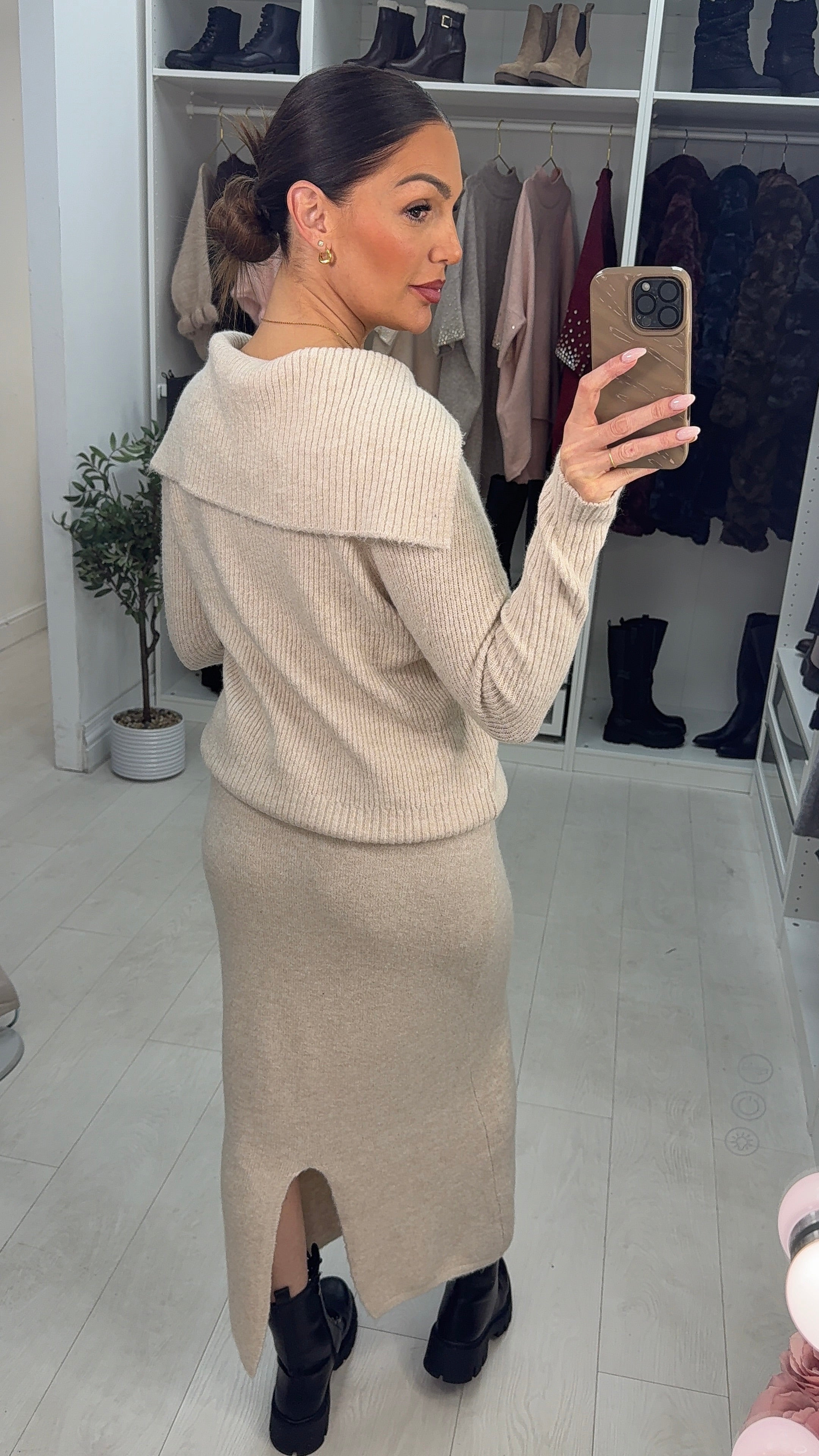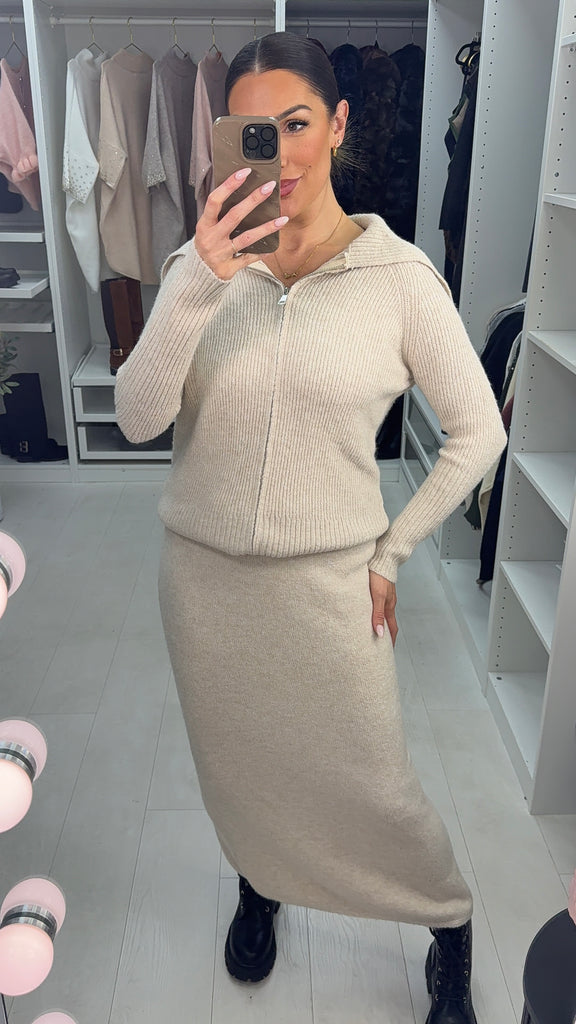 Tarissa Plain Ribbed Zip Front Skirt Co-Ord Set