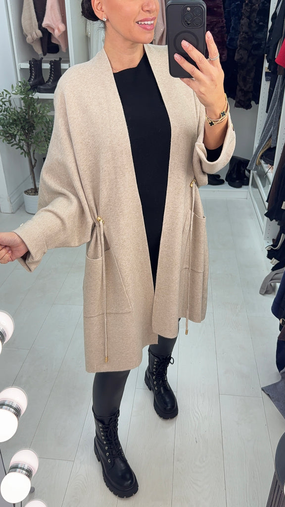 Vinya Plain Tie Waist Knit Cardigan