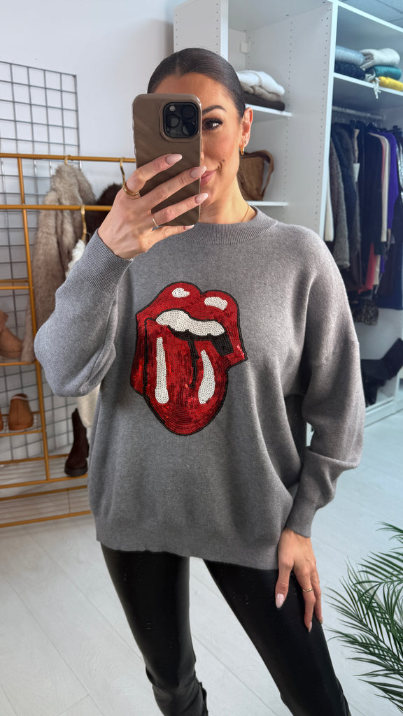 Lucillie Sequin Embellished Lips Detailed Jumper