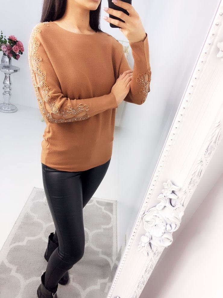 Calana Crochet Stud Arm Batwing Knit Jumper