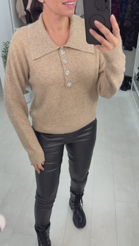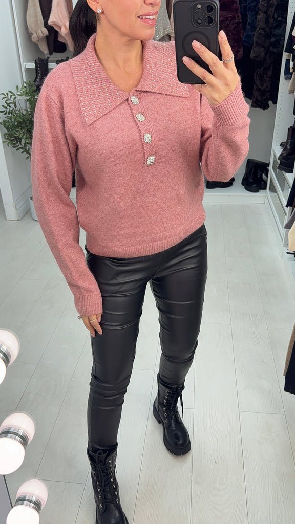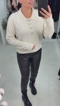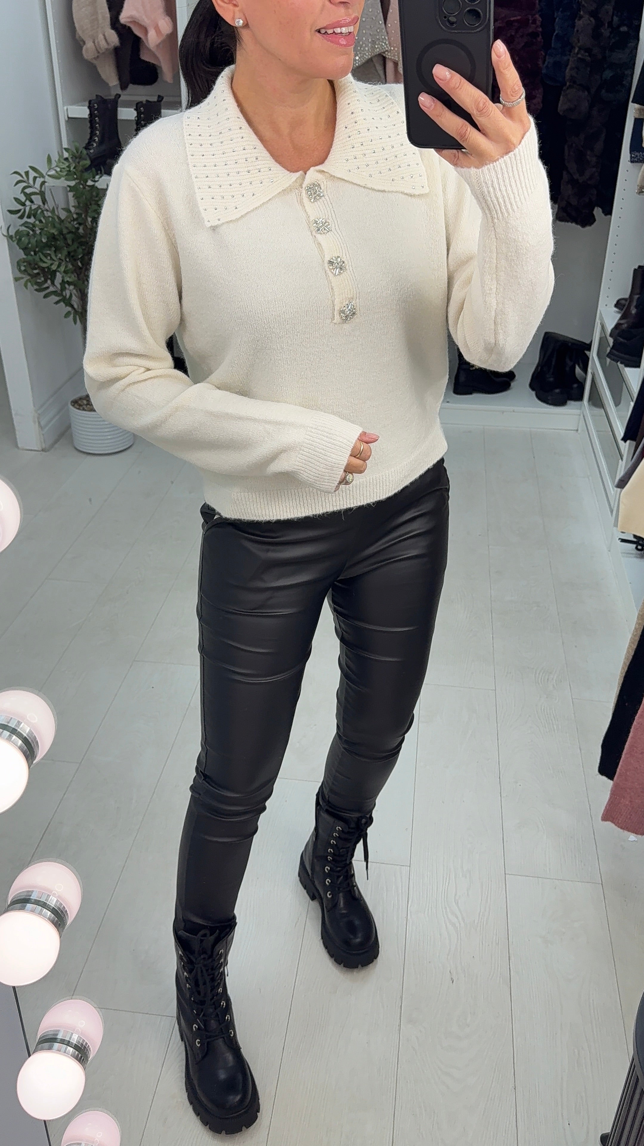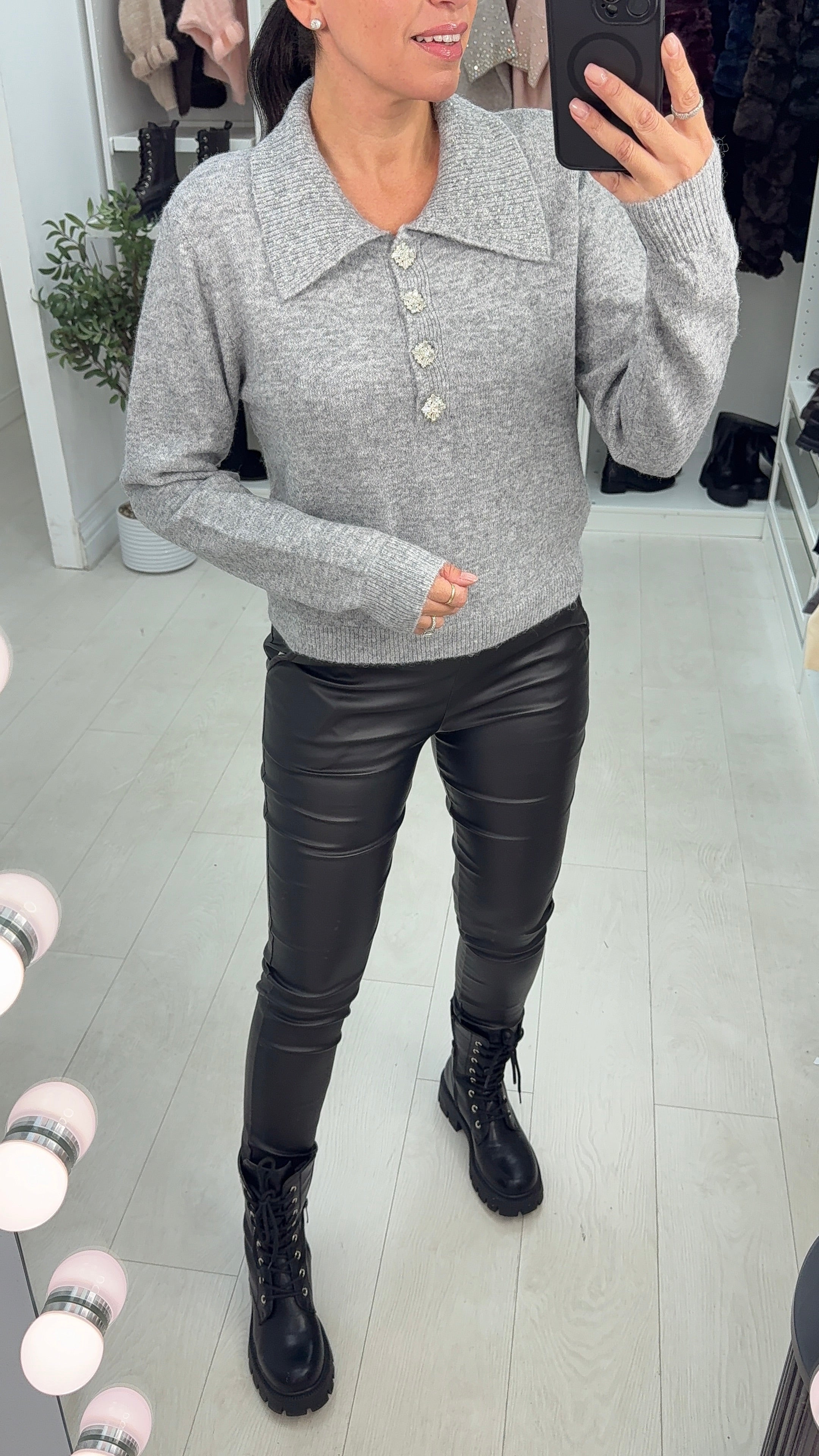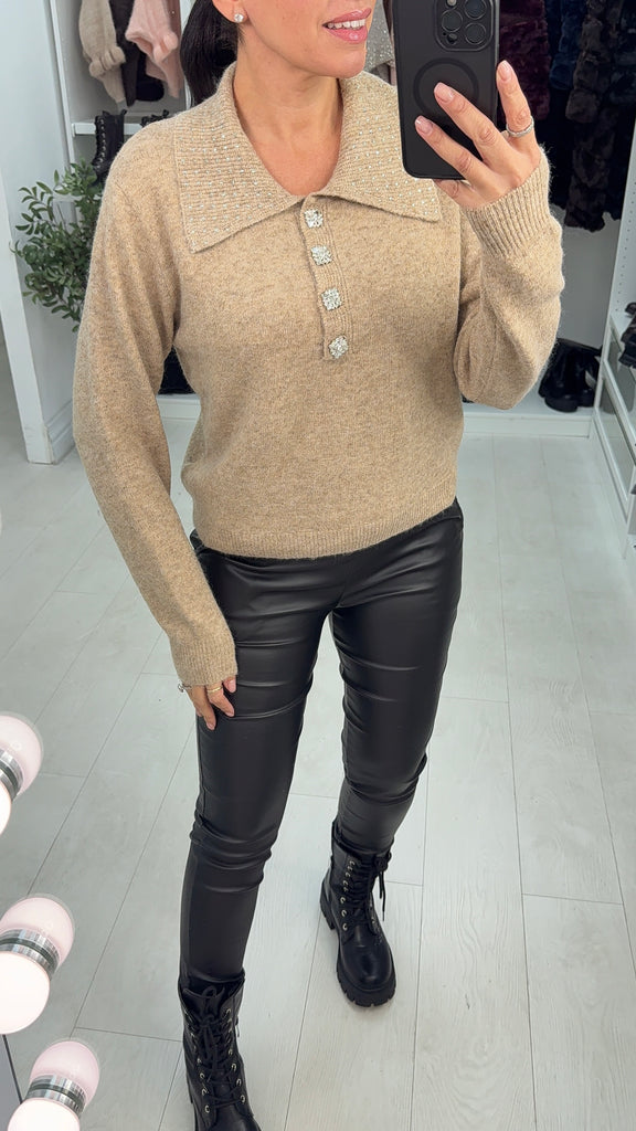 Wrap yourself in luxury with the Damina Embellished Collar Super Soft Jumper. Crafted from sumptuous, touchably soft fabric, this long-sleeve essential features an exquisitely embellished collar that elevates any outfit with understated elegance. The decorative button detail and functional half-way button design offer both style and practicality, allowing you to adjust your comfort throughout the day. Perfect for layering or wearing solo, this versatile piece seamlessly transitions from casual weekends to polished weekday looks. Indulge in the perfect blend of sophistication and comfort.