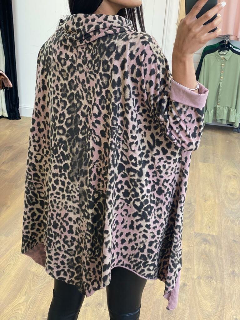 Damla Leopard Cowel Neckline Oversized Sweatshirt