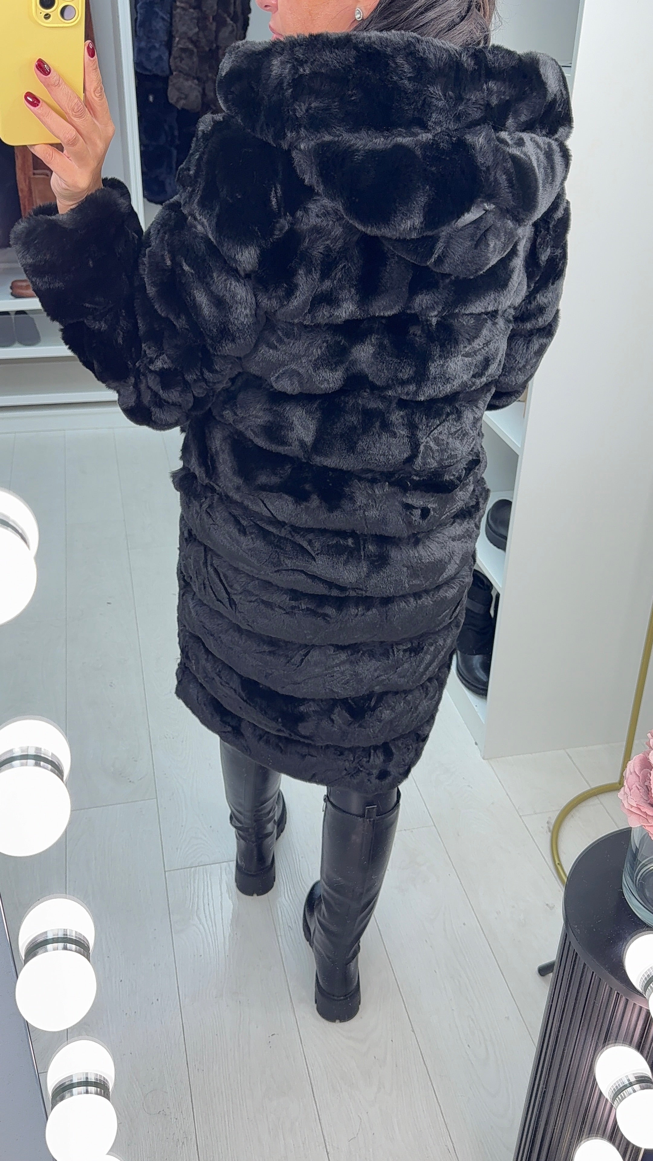 Miki Black Faux Fur Panelled Longline Hooded Coat
