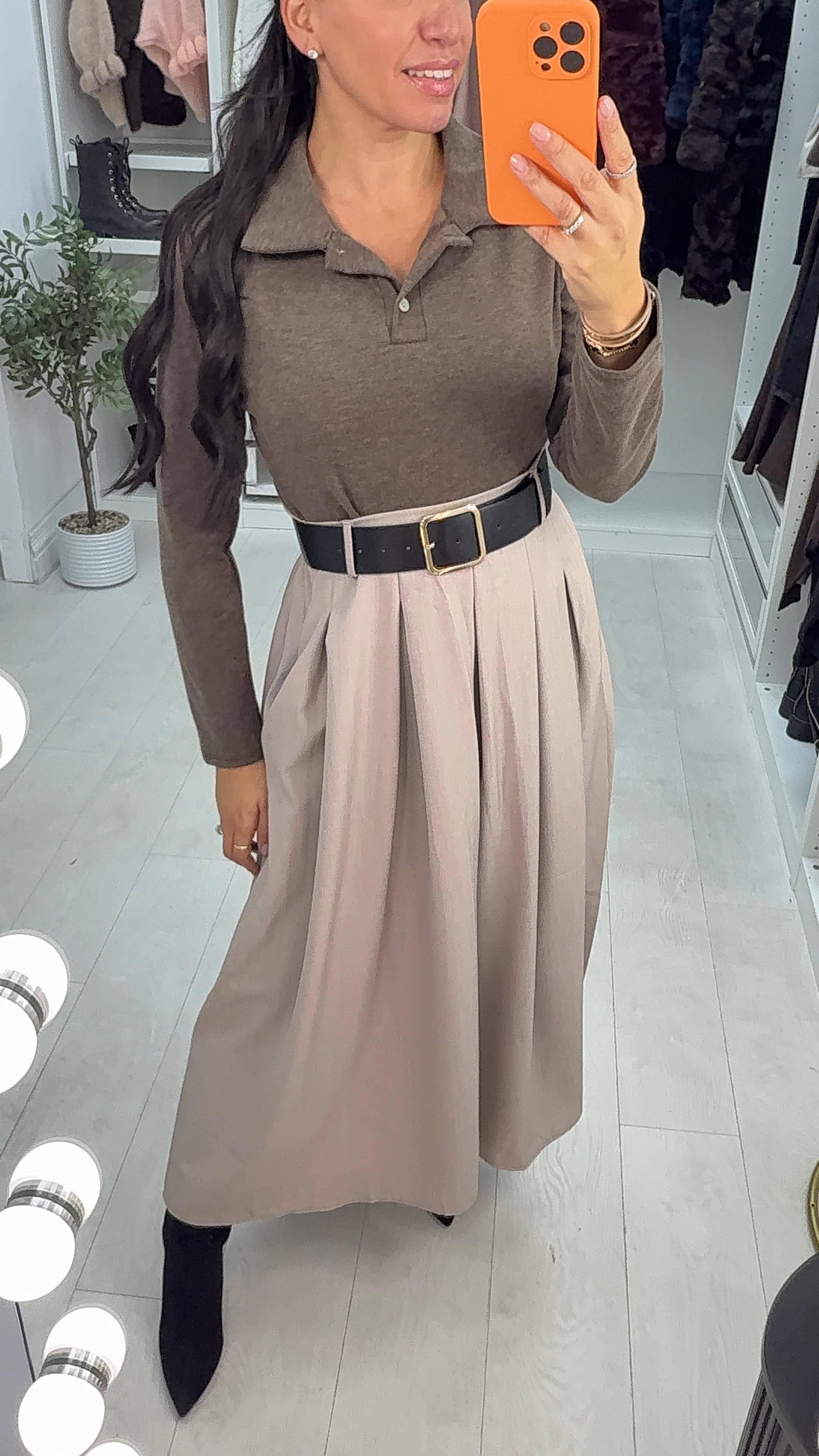 Elevate your wardrobe with the Milly V Neck Belted Cream Skirt Dress. Featuring a flattering V-neckline, elegant collar, and delicate button details, this long-sleeve dress combines sophistication with style. Its cream skirt adds a timeless touch, while the included belt cinches the waist for a polished silhouette. Perfect for any formal occasion, this dress ensures you look effortlessly chic and confident.