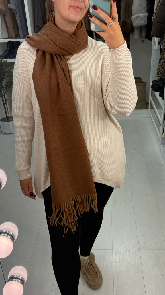 Wrap yourself in cozy charm with the Pippi Plain Super Soft Scarf. Its silky softness feels like a gentle hug, while playful tassels add a cheeky touch to any outfit. Perfect for brightening chilly days with comfort and fun!